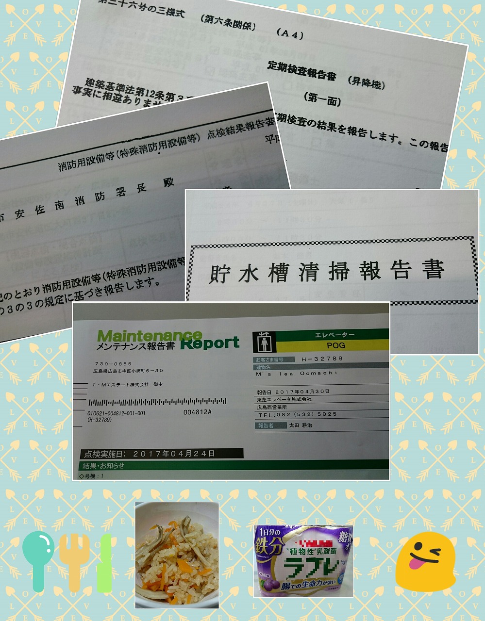 エレベーターの点検や、消防点検、受水槽清掃、
